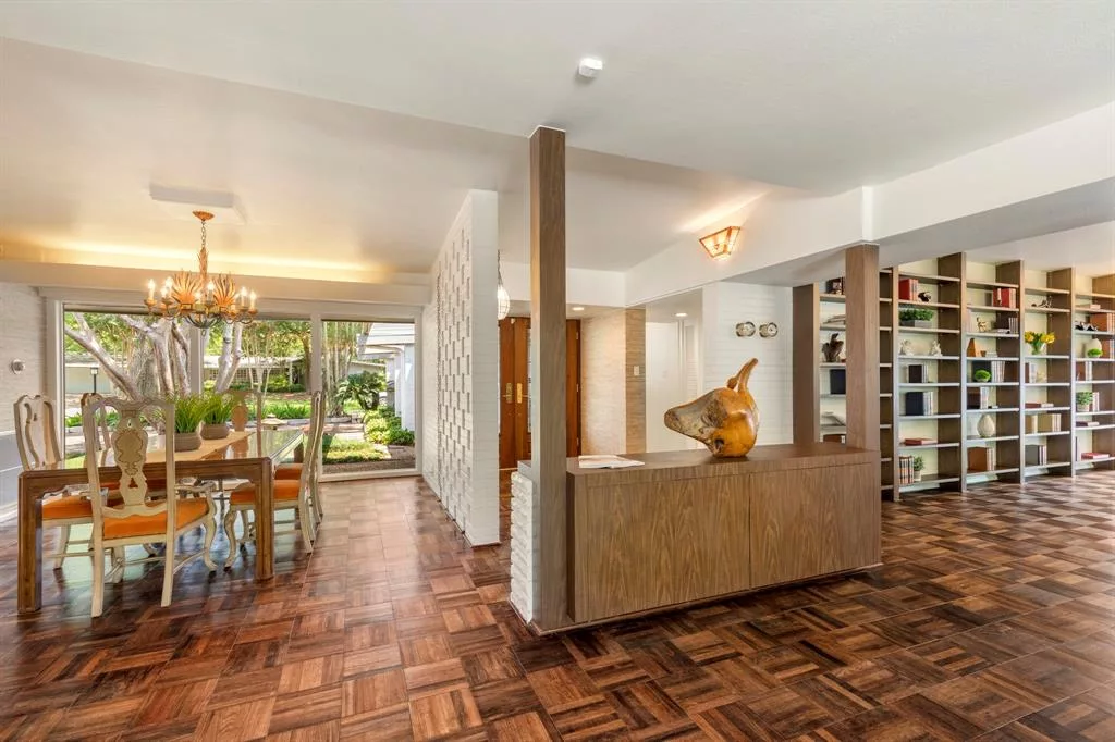 This is a significant and prominently sited vintage modern house by architect Wylie Vale which appears to still have many of its interesting original details. The house is in Piney Point Village, a community Vale helped organize. Wylie Vale (1916-2013) was a Rice graduate who designed over 400 mostly upscale houses, 100 plus schools, almost 50 churches plus other buildings. His work is detailed on the Houston Mod forum here.