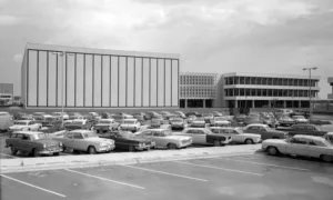The building used a hexagonal module. The kitchen was an elongated hexagon in plan. The Master Bedroom was a complete hexagon in plan with an exposed sloping ceiling. The outside corner of the hexagonal bedroom was mitered glass. The landscaping, also designed by the husband and wife architects, carried out the hexagonal theme.