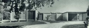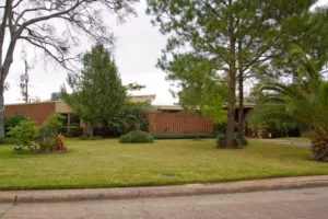 In front of the building`s public façade, along Holcombe Boulevard, stands a fountain without equal in Houston. The fountain consists of a simple rectangular pool with a row of bronze nautilus shells shooting jets of water at a limestone sculpture entitled Wave of Life by noted American artist Wheeler Williams, which depicts a recumbent man and woman holding aloft a child symbolizing the future. Visitors were welcomed with a wide flagstone terrace surrounded by azaleas. At the rear of the building there was an Olympic swimming pool surrounded by an elaborately patterned terrazzo deck shaded by a free-form steel and corrugated fiberglass sunscreen.