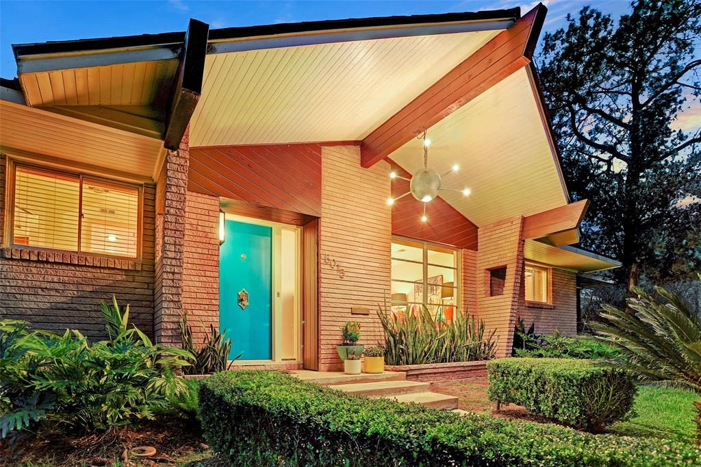 Last month’s Mod of the Month house was the home of a NASA astronaut – the Space Age theme continues with the marvelous Sputnik House as the focus of the March event. The house was built in 1957, the same year as the launch of the world’s first space satellite called Sputnik, which so captivated the period that the original owner put into orbit a replica floating above the front door. The Sputnik fixture is sensational as is the rest of the custom built house complete with sought after features like poured terrazzo floors, brick interior walls, pecky cypress siding, loads of custom cabinets and shelving, colorful original light fixtures, a handsome brick fireplace wall, baths with sparkling original ceramic tile, and glass sliding doors leading to a spacious patio and back yard.