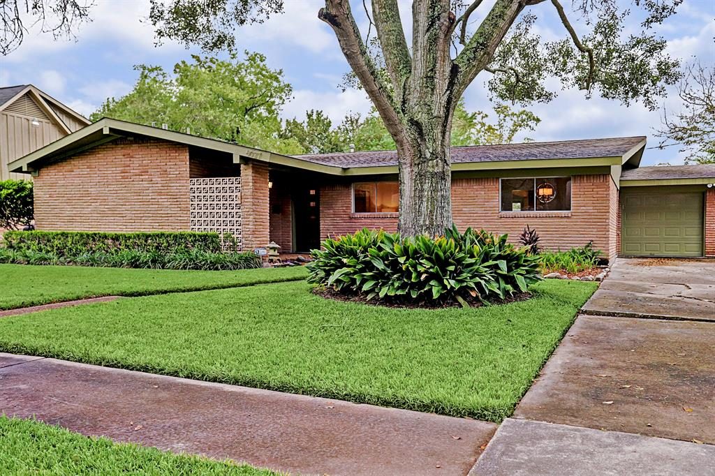Located about two miles outside the loop in the attractive Parkwest neighborhood, this nifty vintage contemporary style house has been carefully preserved and thoughtfully updated. The sensible flow of the original 1960 layout has been preserved yet freshened and refinished to sparkle once again. Note the broad glass expanse with views to the beamed patio. The den features a raised ceiling, and the kitchen’s flush-front cabinetry has been renewed. Parkwest is a deed-restricted community within the City of Houston and is served by the HISD. There are 956 houses with a median size of 2,200 SF and median 1960 construction date. Several vintage contemporary style houses are generally located on each block.